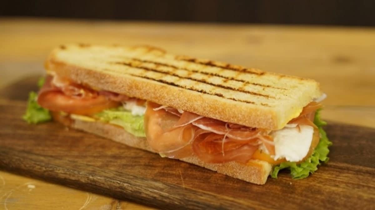 Il panino simbolo di Ischia, farcito con prosciutto crudo dolce, fior di latte, pomodoro, lattuga e maionese
